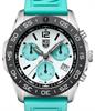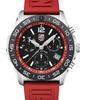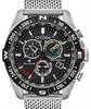 Date calendar, window display. 30 min, 60 sec, 1/10 sec registers chronograph.