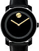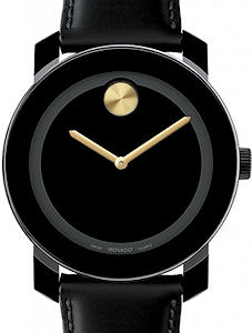 Visit our stores to see all Movado Bold watches. Movado BOLD watch in 42mm black TR90 composite material/stainless steel case with black dial, gold metallic Movado Museum dot, gold-tone hands, black leather strap