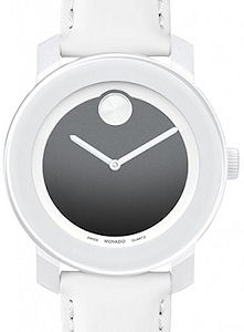 . Movado BOLD watch in 36mm white TR90 composite material/stainless steel case with grey metallic color dial, white hands, white leather strap