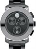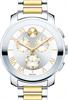 Movado BOLD chronograph watch in stainless steel 40mm case with quartz movement. Silver color dial with gold tone accents, date and day sub-dial. Stainless steel bracelet with yellow gold accents