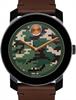 Green, brown and beige camouflage-print. Rose gold tone Movado Museum dot.