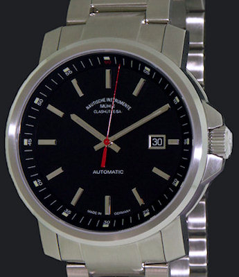 Muhle 29er BIG is name of a brand new class of dinghy designed for the Kiel Week sailing event - sporty, dynamic, just like the Muhle watches. Movement is SW200 version Muhle, large 42.5mm stainless steel case, scratchproof sapphire crystal, screw down crown, see-through caseback, black dial with applied indices, Super-LumiNova coated hands. Metal bracelet.