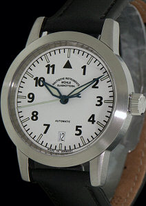 Muhle Glashutte German wrist watch from Muhle Glashutte Sports M12 series. Swiss ETA 2824-2 Automatic movement, solid 316L Stainless steel case with screw-down crown and case back, white dial with date calendar, Arabic numerals and luminous hands, black leather watch band. Available with metal bracelet.