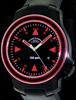 Steel color. Super-LumiNova radiation-free luminous filled. Index style. Red luminous filled.