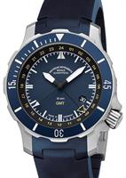 Muhle-Glashutte Seebataillon GMT model M1-28-62-KB-II. Developed for the soldiers of German Navy`s Seebataillon specialized unit. The watch is powered by Sellita SW330 automatic movement with GMT function and date calendar. Comes in a titanium case with blue rubber band, blue dial, and blue 0-60 rotating bezel.