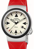 Muhle S.A.R. Rescue-Timer Lumen model M1-41-08-KB-VIII. Modified SW200-1 automatic movement. Sandblasted stainless steel case with rubberized bezel cover. Cream colored super luminova dial with black colored hands and markers. Red rubber strap with deployant buckle. Water resistant to 1000 meters. Sapphire crystal with anti-glare coating.