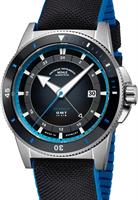 Muhle Glashutte Sportivo Travel GMT watch model M1-52-13-CK. Powered by SW330-2 automatic movement. Steel case is brushed and polished finished. Comes on a black/blue rubber band with scratchproof sapphire crystal, screw down crown, black color dial, with blue accents and 0-60 bezel.