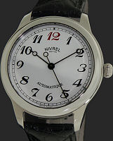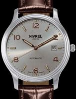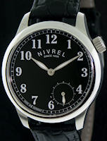 Nivrel Automatic Limited Edition model. Swiss ETA Cal. 2824-2 Automatic movement with date calendar. Sterling silver Guilloche textured dial with Arabic printed numerals. Stainless steel satin finished case with observation crystal. Limited Edition of 1000 pieces.