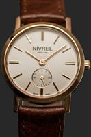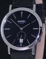 High polished stainless steel case in a ultra-slim under 6.00mm profile. Genuine sapphire crystal. Powered by a Swiss ETA Quartz movement. Nivrel factory model number NE.1050.1CASSS.