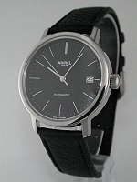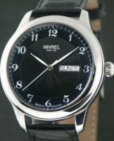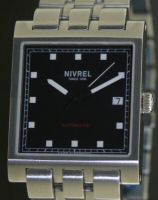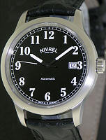 Nivrel Automatic wrist watch model 125.020 AASDS. Swiss ETA Cal. 2824-2 Automatic movement with date calendar. Black dial with large Arabic luminous numerals. Stainless steel satin finished case with observation crystal.