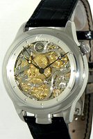Nivrel Erotica Skeleton Repeater. Swiss Automatic movement ETA 2892-A2, with a 5-minute repeater module from Dubois-Depraz reserved for NIVREL. Hand engraved rotor. 5 minute repeater. 18KT gold penis shows up during the chime.