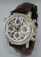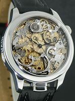 Nivrel Repetition Annuelle POLO 2009 powered by Nivrel version of automatic ETA 2892-A2 movement with hand-engraved and hand-skeletonized repeater module. Solid stainless steel case with observation back, sapphire crystal, leather strap