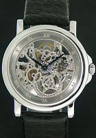 Nivrel fully skeletonized Automatic wrist watch. Gorgeous hand skeletonized rhodium plated ETA 2892-2 Swiss Automatic movement with Cote de Geneve finishing is housed in an updated large 42mm case, has a silver chapter ring with index markers, observation case back, blued thin hands and Louisiana Alligator strap.