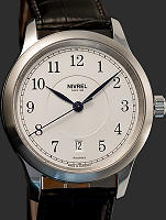 Nivrel special Anniversary Edition model. Swiss ETA Cal. 2824-2 Automatic movement with date calendar. Sterling silver Guilloche textured dial with Arabic printed numerals. Stainless steel case with observation crystal. Limited Edition of 500 pieces.