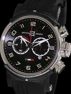 Made in Italy Officina Del Tempo "Block" collection with steel case and black PVD lugs, chronograph with date calendar on black dial, black rubber watch strap