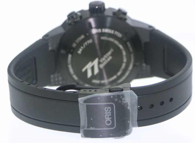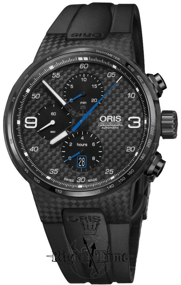 Oris Williams VALTTERI BOTTAS automatic chronograph 01-674-7725-8784-SET-RS. Limited edition to 700 pices. Black carbon fiber case with titanium caseback. Genuine rubber strap. Tachymeter scale bezel. Black carbon fiber dial. Luminous hands and markers.