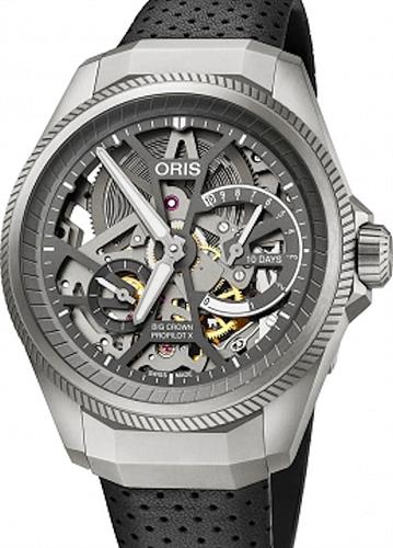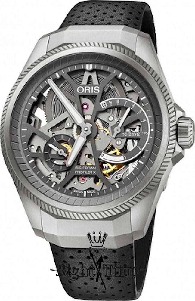 Oris Big Crown ProPilot X Calibre 115. Powered by in-house developed Calibre 115 manual winding movement with 10 days power reserve indicator and small seconds platform. Titanium case. Black leather band. See-through dial and back