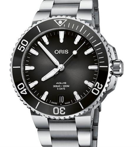 Oris Aquis Diver model 01 400 7769 4154-07 8 22 09PEB. Powered by the phenomenal Oris Caliber 400 automatic movement. Made in house by Oris in Switzerland, this new movement has 21 jewels and a massive 5 day power reserve. The movement is housed in a stainless steel case on a bracelet. Black dial with luminous hands and markers. Black color ceramic uni-directional bezel. Sapphire scratch resistant crystal. Water resistant to 300 meters.