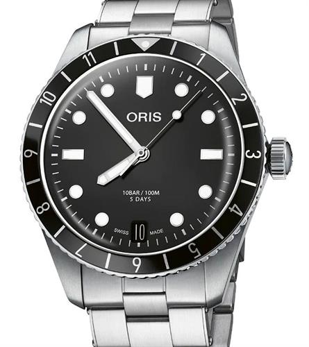 Oris Divers Sixty Five 12H Calibre 400 model 01 400 7772 4054-07 8 20 18. Powered by the phenomenal Oris Caliber 400 automatic movement. Made in house by Oris in Switzerland, this new movement has 21 jewels and a massive 5 day power reserve. The movement is housed in a stainless steel case on a bracelet. Black dial with luminous hands and markers. Black 12-hours ceramic insert. Sapphire scratch resistant crystal. Water resistant to 100 meters.
