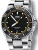 Oris Aquis Divers wrist watch. 300m Water resistant. Swiss Automatic movement, stainless steel 43mm case with black uni-directional 0-60 rotating bezel, screw-down crown, black dial with yellow color accents, luminous hands and markers, date calendar, sapphire anti-reflective scratch-proof crystal, stainless steel bracelet.