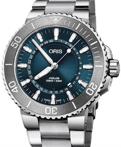 Oris Aquis Source of Life Limited Edition model 01 733 7730 4125-Set MB. Swiss made Oris 733 automatic movement. Blue dial with polished steel hour markers and hands. Fully visible date calendar ring. Ratcheted 60 minute tungsten plated bezel. Stainless steel case on bracelet. Special engravings on the back of the watch. Sapphire. Rated 300 meters water resistant. Limited to 2343 pieces