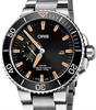 Oris Aquis, model 01 743 7733 4159-07 8 24 05PEB. Multi-piece solid stainless steel case and bracelet. Uni-directional ceramic black bezel with 0-60 minute scale. Black dial with small second display at 9 o`clock and orange luminous hands and markers. Powered by the Oris 743, base SW 220-1 movement. Rated to 500 meters water resistant. Sapphire scratch-resistant crystal.