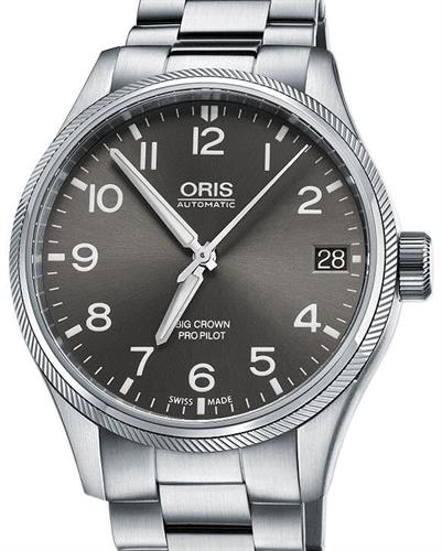 Oris Big Crown ProPilot Date. Swiss automatic movement, stainless steel case with bracelet, grey color dial with date calendar, sapphire crystal
