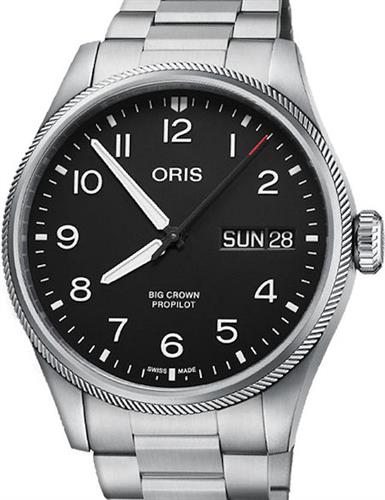 Oris Big Crown ProPilot model 01 752 7760 4164-07 8 22 08. Oris Caliber 752 (base SW 220-1) automatic movement with day/date function. Black dial with Arabic numerals. Stainless steel case and bracelet. Sapphire crystal.