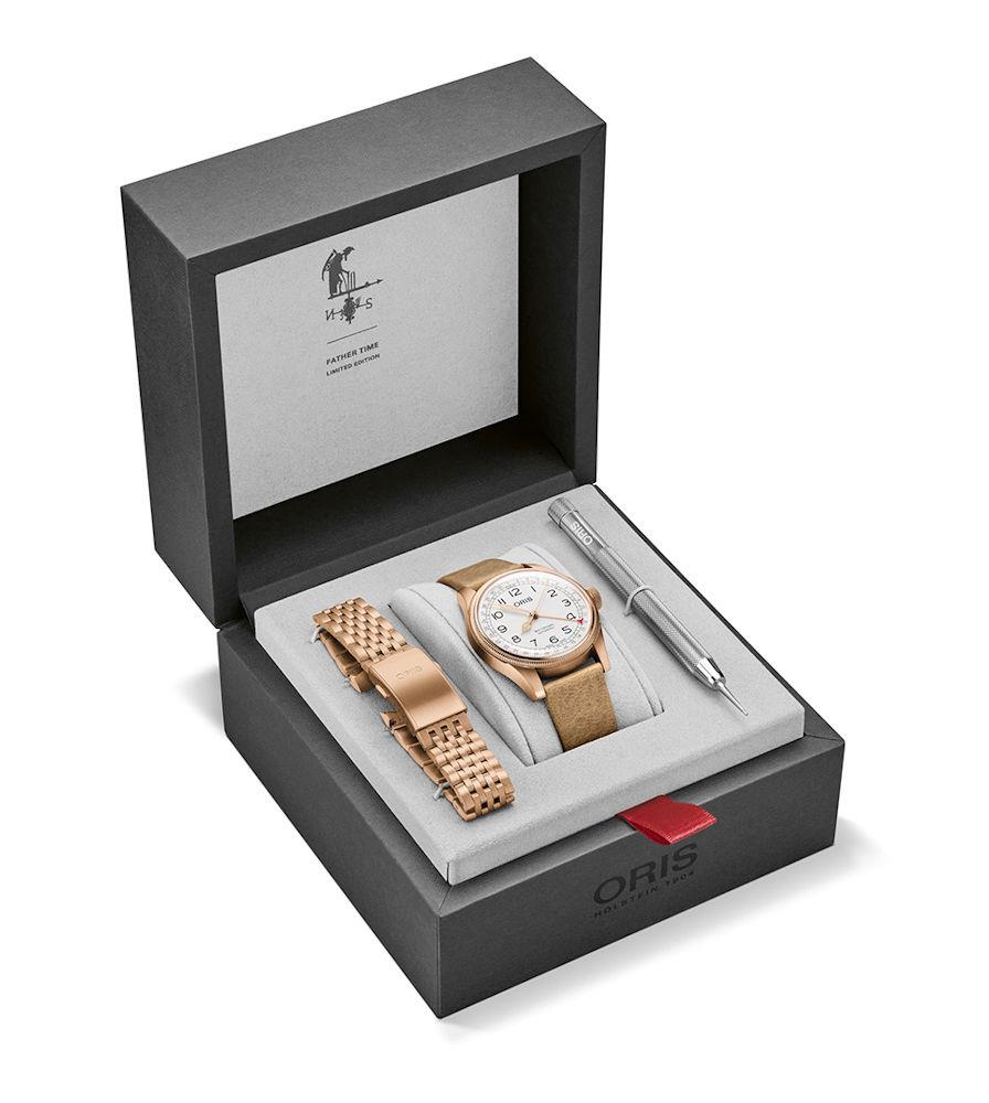 Oris in a collaboration with Marylebone Cricket Club presents the Father Time Limited Edition. The 40 mm bronze watch is named after the iconic Father Time weathervane at Lord`s, the Home of Cricket and where MCC is based. It`s a spin on the Big Crown Pointer Date, and comes with both an articulated solid bronze bracelet and a strap made by Swiss partner Cervo Volante from sustainably sourced deer leather. It`s equipped with Oris Calibre 754, a Swiss Made automatic that powers the watch`s signature pointer date function, indicated by a central hand with a red, crescent-shaped tip.