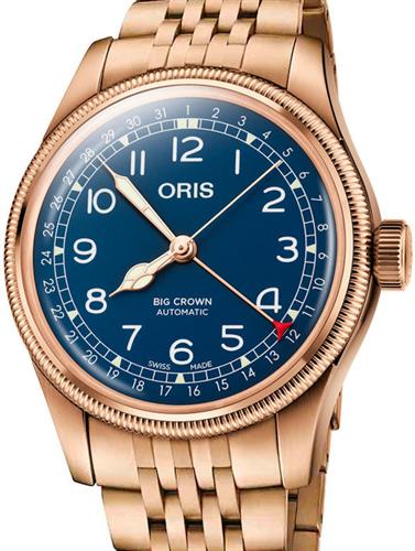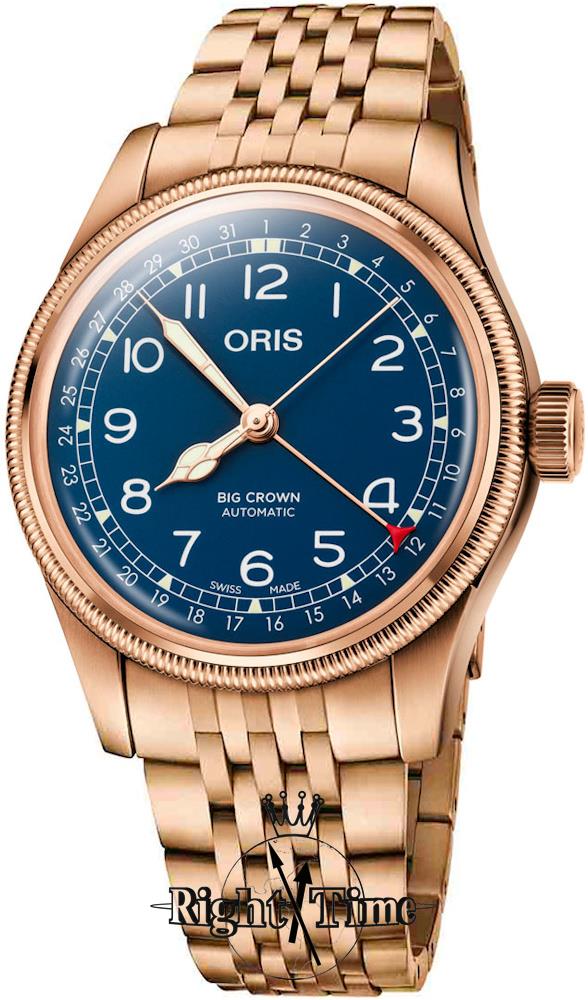 Oris Big Crown Bronze Pointer Date watch model 01 754 7741 3165-07 8 20 01. Blue dial. On bracelet. Tribute to the 80th anniversary of the production of iconic Oris Big Crown.