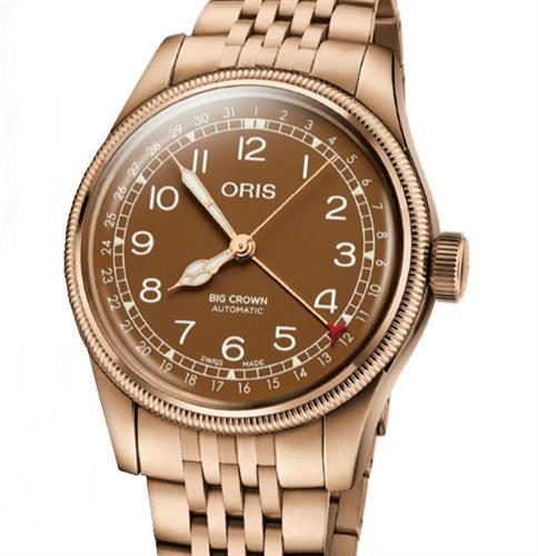 Oris Big Crown Bronze Pointer Date watch model 01 754 7741 3166-07 8 20 01. Brown dial. On bracelet. Tribute to the 80th anniversary of the production of iconic Oris Big Crown.