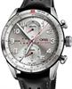 Oris Audi Sport Limited Edition. Swiss automatic chronograph. Solid titanium case with black leather band, silver color dial with luminous Arabic markers, titanium case back with observation crystal. Tachymeter scale on the bezel. Comes in special box with certificate