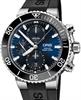 Oris Aquis Diver Chronograph. Swiss made Oris 774 (base SW 500) 25 jewel automatic movement with 48 hour power reserve. Solid stainless steel case with combination satin/polish finish. Stunning blue gradient dial with black sub-dial accents, and stainless steel markers/hands. Uni-directional black ceramic bezel with 60 minute scale. Black rubber band. 500 meters water resistant. Sapphire crystal.