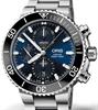 Oris Aquis Diver Chronograph. Swiss made Oris 774 (base SW 500) 25 jewel automatic movement with 48 hour power reserve. Solid stainless steel case and bracelet with combination satin/polish finish. Stunning blue gradient dial with black sub-dial accents, and stainless steel markers/hands. Uni-directional black ceramic bezel with 60 minute scale. 500 meters water resistant. Sapphire crystal.