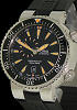Oris Divers wrist watch model 643 7609 8454 with helium valve. 1000m Water resistant. Swiss ETA Automatic movement with date calendar and seconds platform, stainless steel 47mm case with uni-directional 0-60 rotating bezel, screw-down crown, orange luminous hands and markers on black "waives" patterned dial, sapphire anti-reflective scratch-proof crystal, rubber watch band.