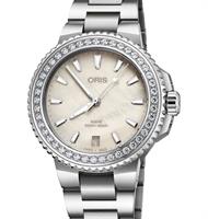 Oris Aquis Date model 01 733 7770 4155-07 8 18 05P. Stainless steel case and bracelet. Aegean blue genuine mother-of-pearl dial with luminous hands and markers. Swiss made Oris Caliber 733 automatic movement. Domed sapphire crystal with anti-glare coating. Diver rated to 300 meters. Stainless steel uni-directional diver bezel with 60 minute scale.