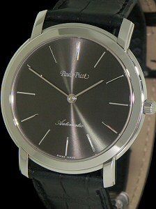 Paul Picot Firshire powered by Lemania 8810 automatic self-winding watch. Stainless steel polished round case. Sapphire crystal. Grey dial. Black alligator watch strap.