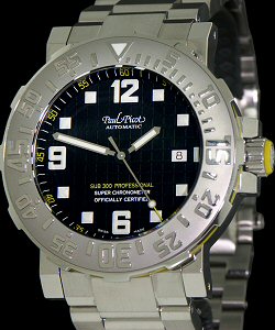 Paul Picot C-Type Classic 43mm automatic self-winding watch with C.O.S.C. chronometer certification. Stainless steel case. Unidirectional rotation 0-60 bezel with anti-friction ring. Sapphire crystal. Black textured dial with luminous hands and markers. Steel watch bracelet. Water resistant to 300 meters. Limited Edition of 999 pieces.