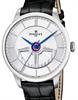 White color. Applied polished steel tone markers. "Grained" texture. Double rotor with "Cotes de Geneve Décor".