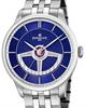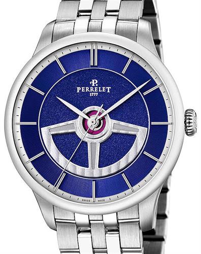 Perrelet Classic First Class Double Rotor watch model A1090/6. Perrelet signature round steel case. Automatic self-winding movement. Blue guilloche "grained" dial with "Cotes de Geneve Décor" double rotor. Stainless steel bracelet