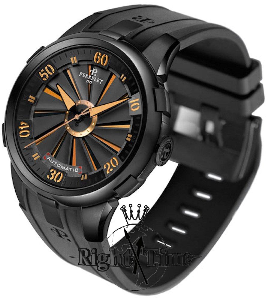 Perrelet Turbine XL Playing With Fire model from Perrelet Turbine XL Vegas Collection. Special limited edition. Black steel case with DLC coated. While turbine with 12 titanium bladed rotates the gold erupts in glowing splendor between the blades until it fuses into a provision of luminous bouquets.