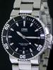 Oris Aquis Divers wrist watch. 300m Water resistant. Swiss Automatic movement, stainless steel case with black ceramic uni-directional 0-60 rotating bezel, screw-down crown, black dial with luminous hands and markers, date calendar, sapphire anti-reflective scratch-proof crystal, stainless steel bracelet.