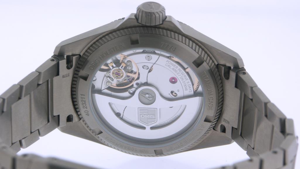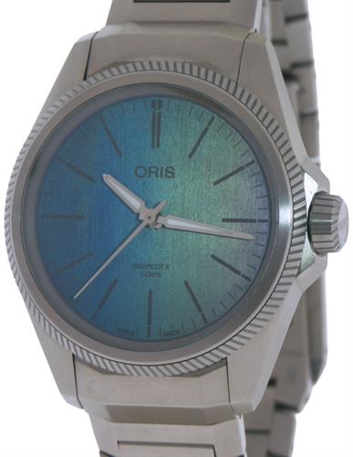 Oris Pro-Pilot X Laser model 01 400 7778 7150-07 7 20 01TLC. Swiss made Oris Caliber 400-2 automatic movement with 5 day power reserve. Solid titanium case and bracelet. Stunning multi-color dial inspired by the principles of biomimicry. Water resistant to 100 meters. Domed sapphire crystal with anti-reflective coating.