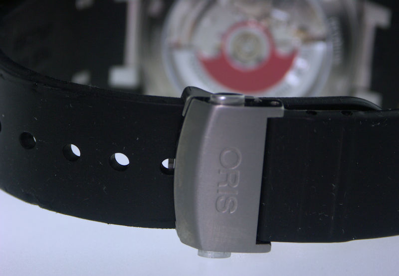 Black color. Rubber. Comes with flexible lugs that are integrated into the rubber strap to ensures perfect wearing comfort as the watch fits even closer to the wrist.