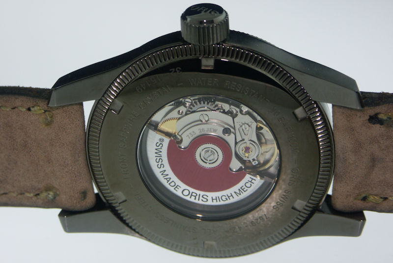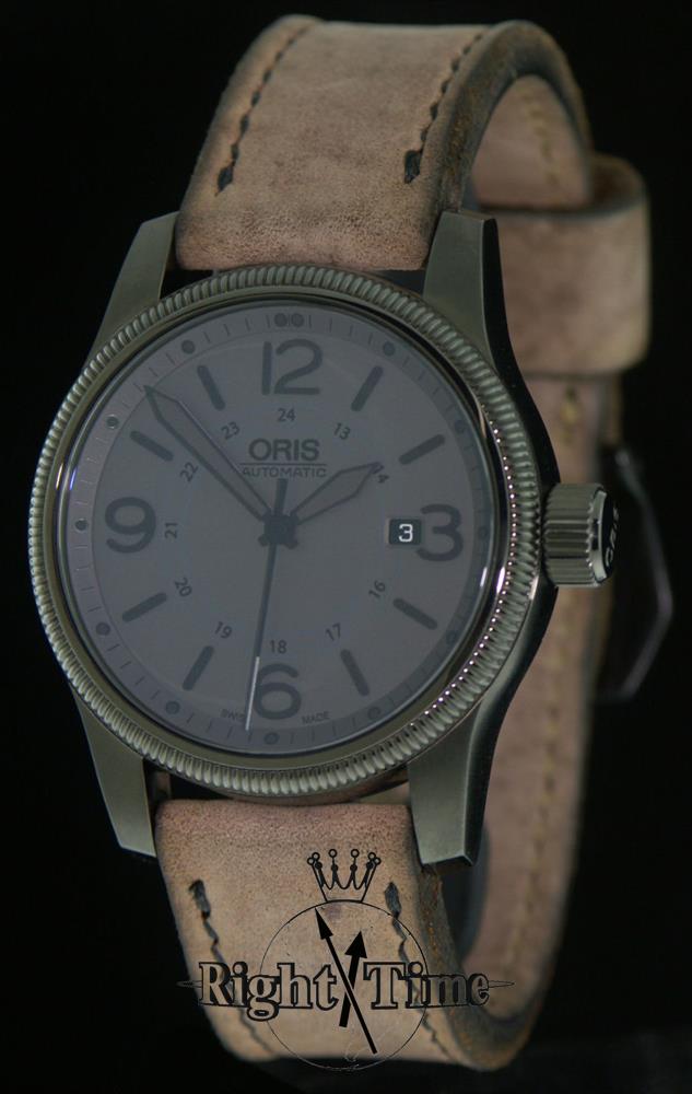 Oris Big Crown model 01 733 7629 4263. Oris 733, base SW 200-1 Swiss-made automatic movement. Solid stainless steel case with a deep grey PVD coating and a coin-edge bezel. Grey dial with black luminous Arabic markers. Comes on a tan SNPR handmade leather strap.