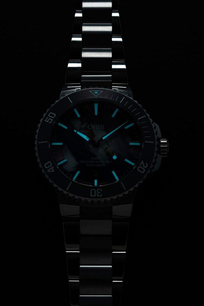 Steel color. Super-LumiNova radiation-free luminous filled.