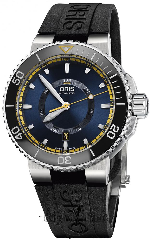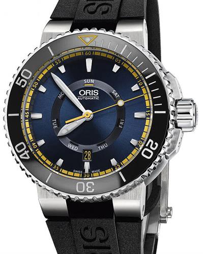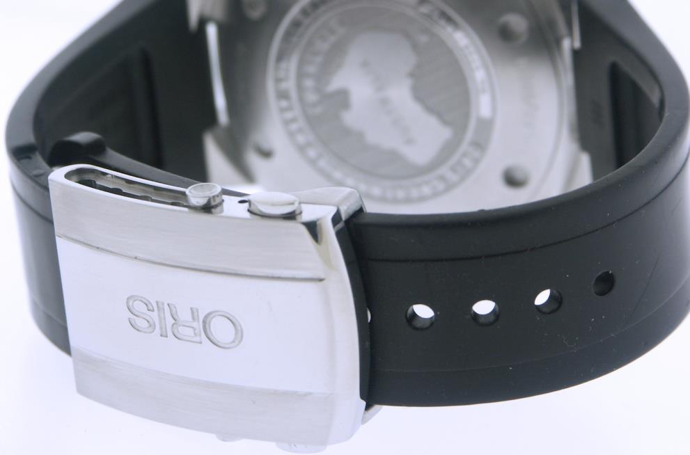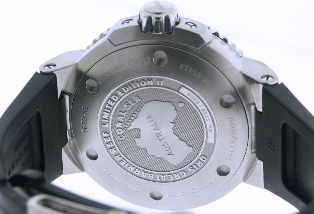 Oris Great Barrier Reef Limited Edition II model 01 735 7673 4185-SET RS. Solid stainless steel case. Deep blue dial with large Superluminova markers. Sapphire crystal. Powered by an automatic movement based on the SW220 with 26 jewels. Black uni-directional bezel with 60 minute markers. Water resistant to 500 meters. Limiter edition of 2000 pieces. Comes in a special box with certificate.