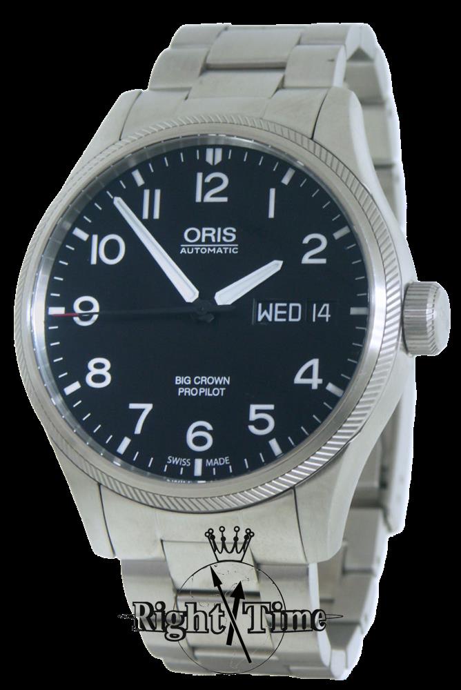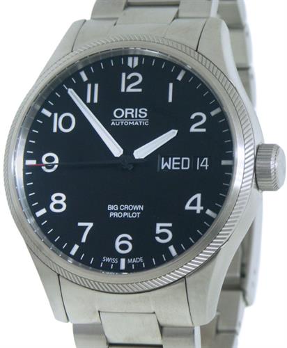 Oris Big Crown Pro Pilot Day/Date. Swiss automatic movement, stainless steel case and bracelet, black color dial with extra large day/date calendar, sapphire crystal