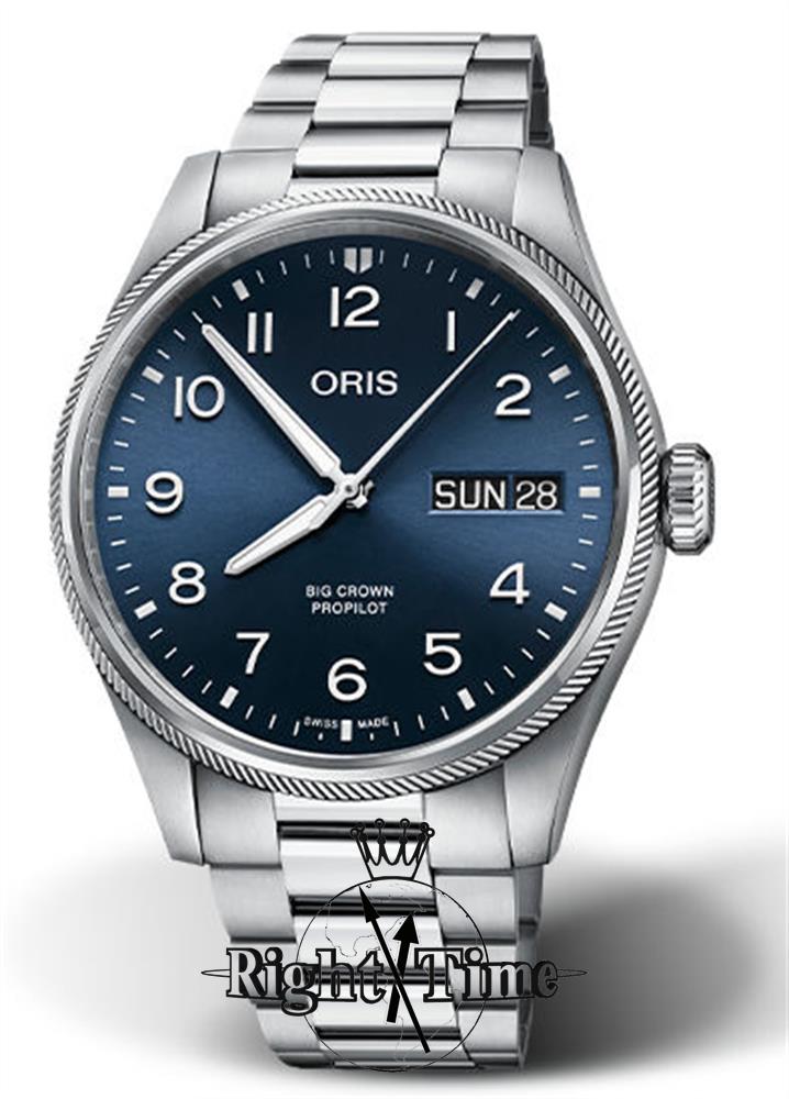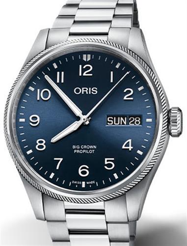 Oris Big Crown ProPilot model 01 752 7760 4065-07 8 22 08P. Oris Caliber 752 (base SW 220-1) automatic movement with day/date function. Blue dial with Arabic numerals. Stainless steel case and bracelet. Sapphire crystal.