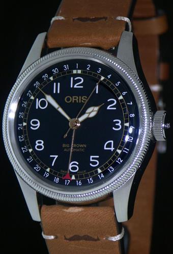 Oris Big Crown "Movember Special Edition" 0175477414037SETLS. Movember is an annual event involving the growing of moustaches during the month of November to raise awareness of men`s health issues, such as prostate cancer, testicular cancer, and men`s suicide. Stainless steel 40mm polished case. Black dial with gold tone hands and minute track. Comes with tan leather and burgundy and tan Nato style nylon strap in a special leather pouch.